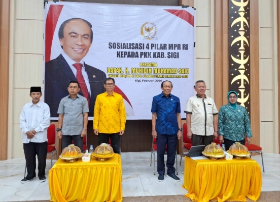 SIGI, SARARAMEDIA.ID - Sosialisasi Empat Pilar MPR RI digelar bersama Tim Penggerak PKK Kabupaten Sigi sebagai upaya memperkuat pemahaman nilai kebangsaan sekaligus mendorong peran perempuan dalam pembangunan sosial daerah. Kegiatan tersebut berlangsung di Aula Dewan Kesenian Sigi (DKS) RTH Taiganja, Desa Kalukubula, Kecamatan Sigi Biromaru, Sabtu sore (14/2/2026), dan dihadiri unsur pemerintah daerah, akademisi, serta perwakilan PKK tingkat kecamatan.
