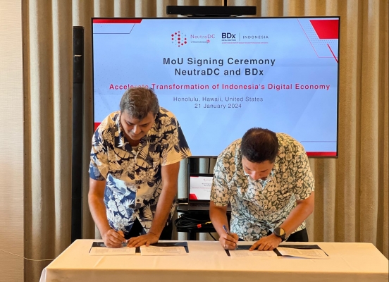 Kolaborasi ini ditandai dengan penandatanganan Nota Kesepahaman (MoU) antara Telkom Data Ekosistem (NeutraDC) dan joint venture dari BDx Data Centers (BDx), Indosat, dan Lintasarta, BDx Indonesia di Pacific Telecommunications Council (PTC) 2024, di Honolulu, Hawaii, Amerika Serikat (AS), pada Minggu, (21/1/2024).