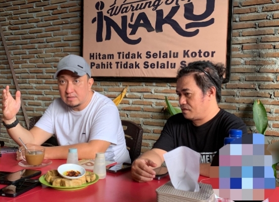 FOTO : (Kiri), Kuasa Hukum Jurnalis Hendly Mangkali, Dr. Mardiman Sane, SH.,MH dalam Konferensi Pers di salah satu warkop di Kota Palu, Kamis pagi, 29 Mei 2025. (Dok/Ist)