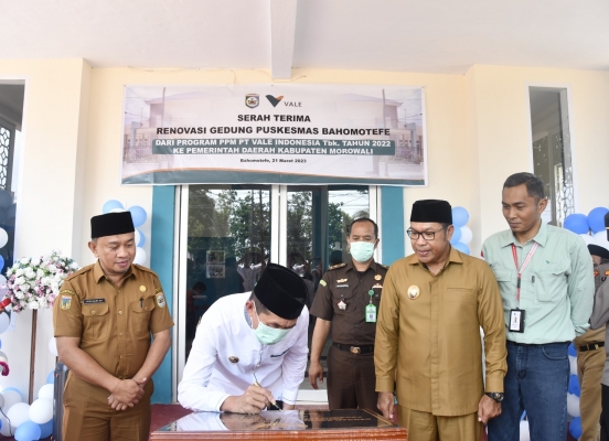 Terbaru, PT Vale melaksanakan kegiatan Serah Terima Renovasi Hibah Pelayanan Kesehatan Masyarakat (PKM) Bahomotefe kepada Pemerintah Daerah (Pemda) Kabupaten Morowali yang ditandai dengan penandatanganan Serah Terima Berita Acara dan Prasasti, Selasa (21/3/2023), di Bahomotefe, Bungku Timur, Morowali, Sulteng.