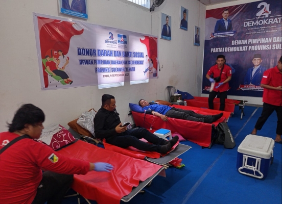 PALU, Sararamedia.id - Dalam rangka memperingati Hari Ulang Tahun (HUT) ke-24 Partai Demokrat, Dewan Pimpinan Daerah (DPD) Partai Demokrat Sulawesi Tengah menggelar rangkaian kegiatan sosial berupa donor darah di Kantor DPD Partai Demokrat Sulteng, Senin (8/9/2025).