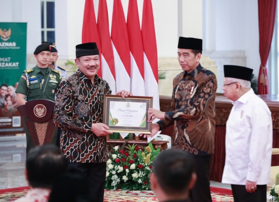 Penghargaan Lifetime Achievement diserahkan langsung oleh Ketua BAZNAS RI, Prof. Dr. KH. Noor Achmad kepada Presiden Jokowi dan Wakil Presiden Ma'ruf Amin dalam acara Zakat Istana di Istana Presiden, Rabu (13/3/2024) kemarin.
