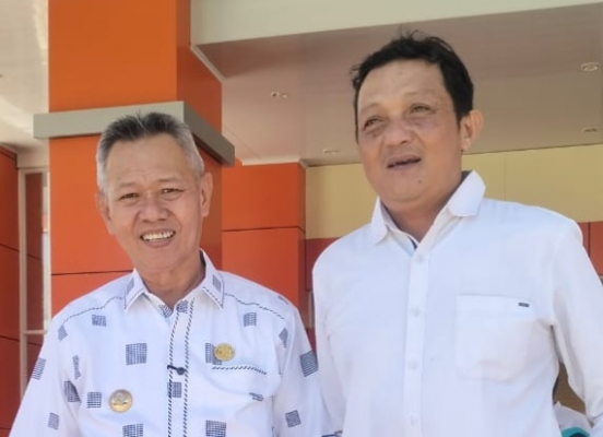 FOTO : (Kanan), Kuswanto, S.Pd., M.Pd guru asal Sigi yang memiliki segudang penghargaan Nasional foto bersama Bupati Sigi, Mohamad Rizal Intjenae, S.Sos., M.Si, usai deklarasi sekolah ramah anak, deklarasi penerimaan murid baru (SPMB) tahun pelajaran 2026-2027 dan deklarasi pakagali pakagaya posikolah, yang dilaksanakan Dinas Pendidikan dan Kebudayaan (Dikbud), dihalaman kantor Bupati Sigi, Rabu pagi, (15/4/2026).