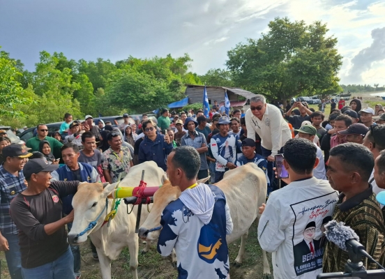 DONGGALA, Sararamedia.id - Bakal calon gubernur Sulawesi Tengah, Ahmad Ali, menghadiri pembukaan lomba karapan sapi di Desa Surumana, Kecamatan Banawa, Kabupaten Donggala, Sulawesi Tengah, Senin sore, (9/9/2024) waktu setempat.
