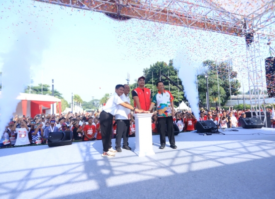 DKI JAKARTA, Sararamedia.net - Ribuan orang berkumpul di Senayan, Jakarta Pusat, Minggu (17/9/2023) pukul 06.00 pagi. Hal itu dimaksudkan bertepatan satu tahun jelang Pekan Olahraga Nasional (PON) XXI 2024 di Provinsi Aceh-Sumatera Utara (Sumut).