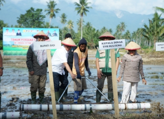 SIGI, SARARAMEDIA.ID - Pemerintah Kabupaten Sigi menunjukkan komitmen nyata dalam mendukung Program Strategis Nasional Swasembada Pangan dengan melaksanakan penanaman perdana padi di lokasi cetak sawah baru, Desa Tulo Rarantea, Kecamatan Dolo, Jumat pagi, (26/12/2025) waktu setempat.